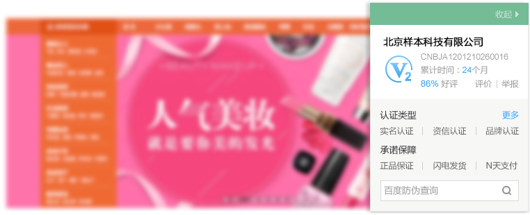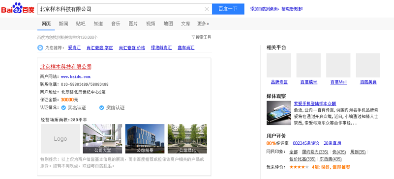资信认证是百度基于第三方实地获取的企业经营资质及相关资产情况等信息,为企业提供前述客观实力信息的特别展现,帮助其更好地获得目标消费人群的关注及信任。